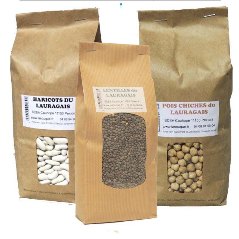 Assortiment de légumes secs du Lauragais. 1 Kg de chacun des 3 produits pour déguster les productions du Domaine de La Souque